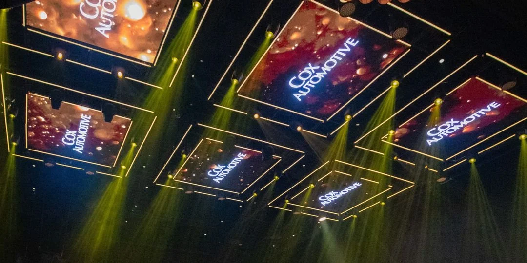 Working with Ideabar and all brand partners, over 5 hours of total video content were created, formatted to cover the range spaces and screens covering the Cox footprint. Content ranged from branded logo-articulations, to stage graphics for presenters, to messaging pieces about the future of the Cox Auto world.